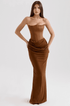 Zaymira Straplez Drape Detaylı Maxi Elbise