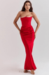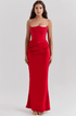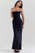 Form: Straplez, korse görünümlü üst, drape etek detaylı