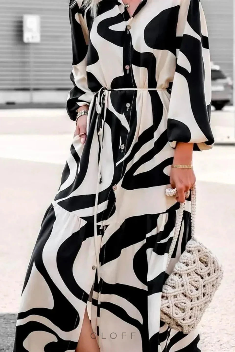 'Zahmetsiz Şık Baskılı Maxi Elbise' ile içinizdeki stil ikonunu keşfedin. Sofistike bir dokunuş için en sevdiğiniz topuklu ayakkabılarla eşleştirmek veya rahat, gündelik bir yürüyüş için düz ayakkabılarla giymek için mükemmel olan bu çok yönlü parçayla görünümünüzü anında yükseltin.