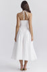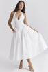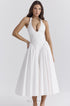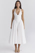 - Tasarım: Dalma Boyundan Bağlamalı Yaka, Açık Sırt, Bedene Oturan Korsaj