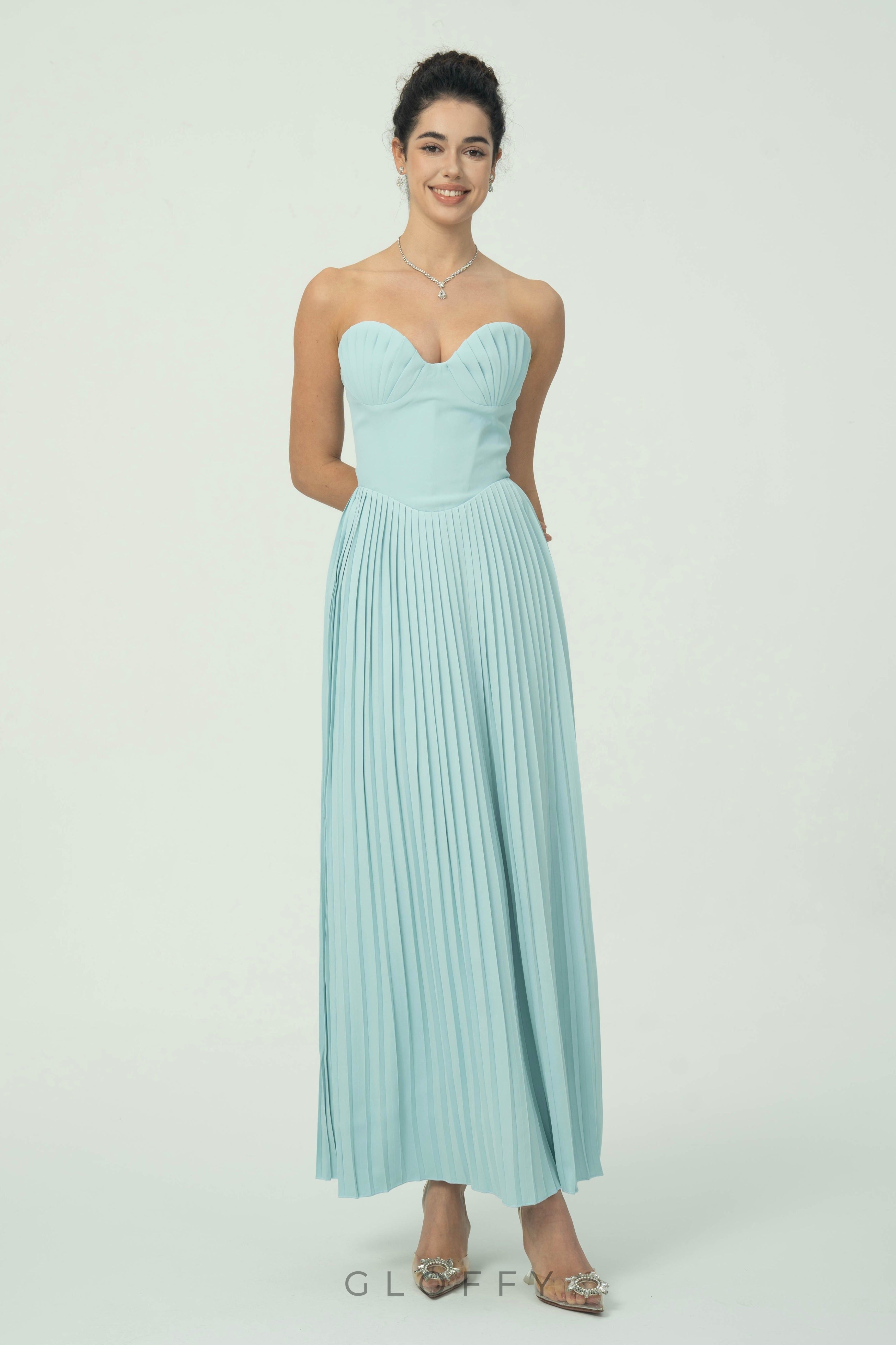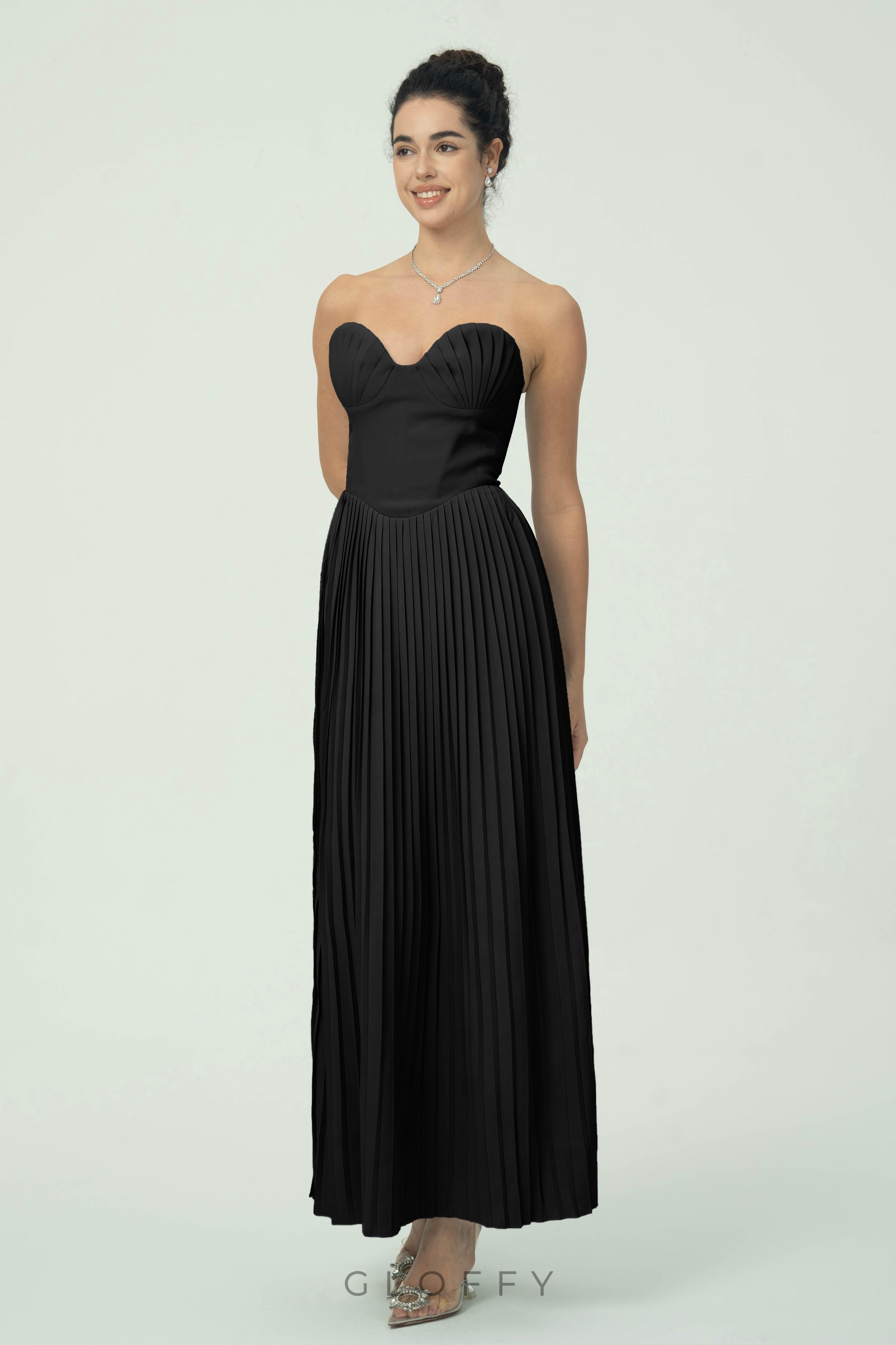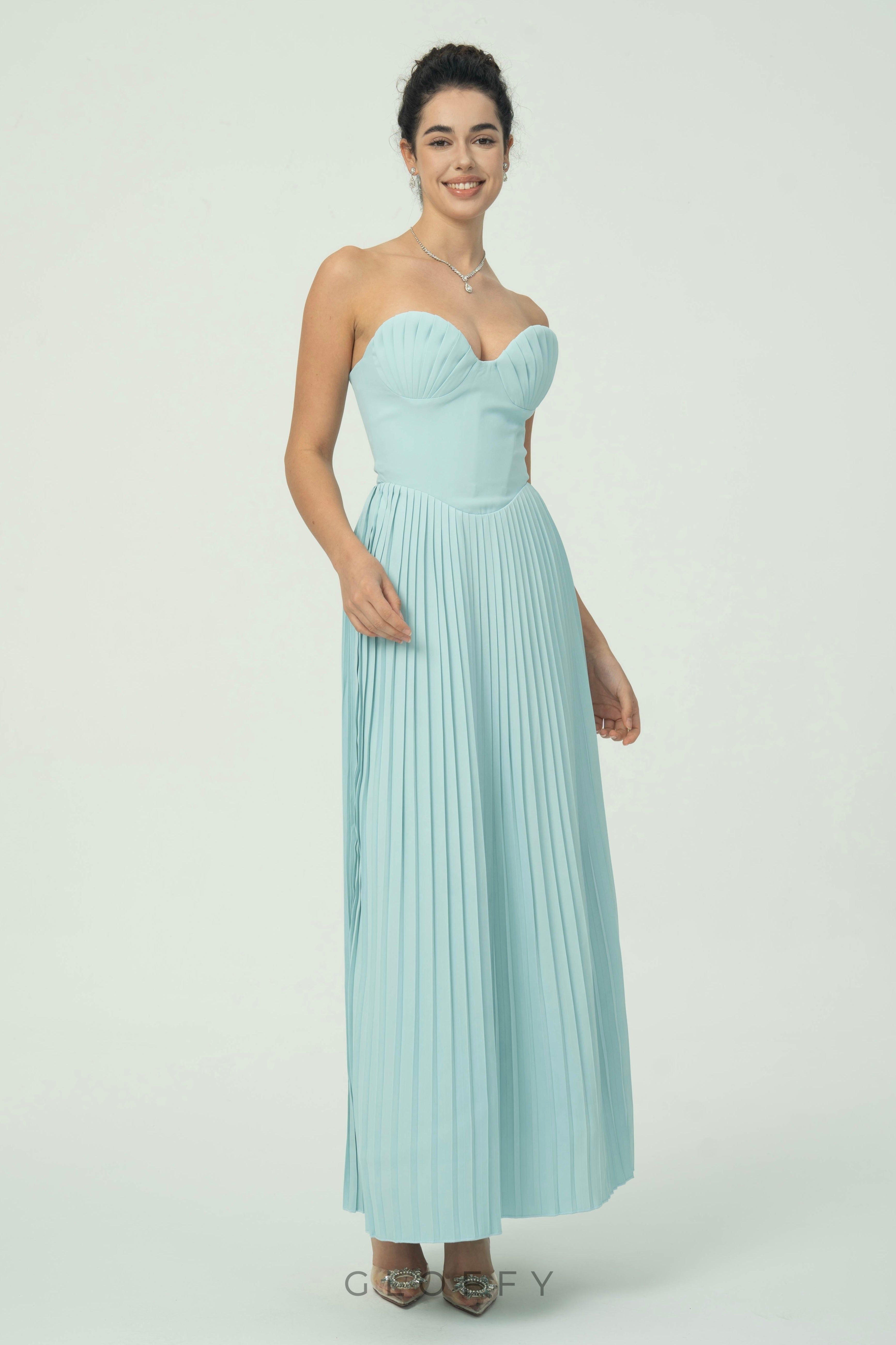• Yaka: Straplez kalp yaka