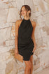 Sophia Mini Elbise ile sofistike çekiciliği keşfedin. Bu mini uzunlukta elbise, zarif bir dokunuş için iki düğmeli kapamayla zenginleştirilmiş, kendine özgü pilili dokulu kumaştan oluşan yüksek bir yakaya sahiptir. Açık sırt stili modern bir dokunuş katarken, toplanmış detaylar ve çapraz ön kısım hoş bir siluet yaratıyor.